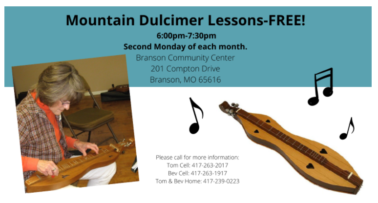 The Appalachian Dulcimer or mountain dulcimer is a fretted string instrument of the Zither family, typically with three or four strings.  If you would like to learn how to play this instrument or have questions, please call Tom or Bev Arnold at (417)239-0223. Lessons are on the 2nd Monday evening of each month from 6-7:30pm. Click here for the flyer.